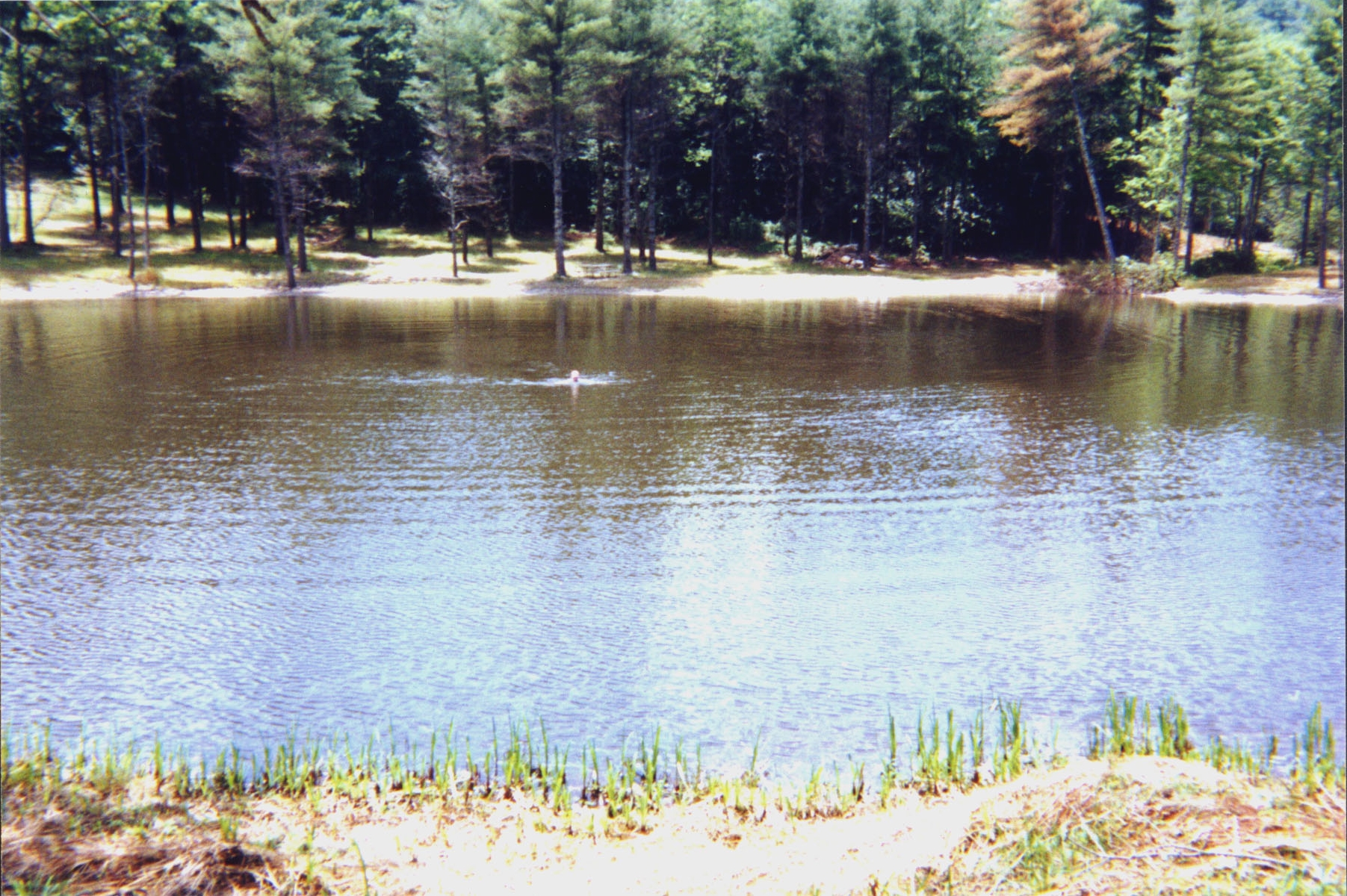 The swim was relaxing; the water was mostly warm with occasional cold spots. The bank was steep and soft. The area was rich in mica, and the bank sparkled in the sunlight. I went swimming twice. Once when we first got there, and again after lunch. Unfortunately, I accidently lost my glasses, when I forgot to take them off the second time. We spent about a half hour looking around on shore for them before I realized they were probably in the lake. I was so mad at myself for loosing my glasses that I stormed off up the road without waiting for Kristen. I had the Bartram Trail maps, but thought that the route was easy enough that Kristen wouldn't need them.
