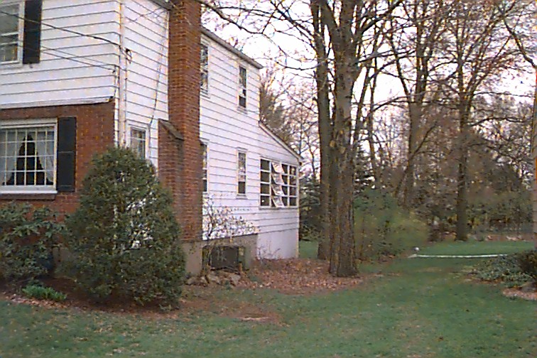 Side angle view from the neighbor's front yard.