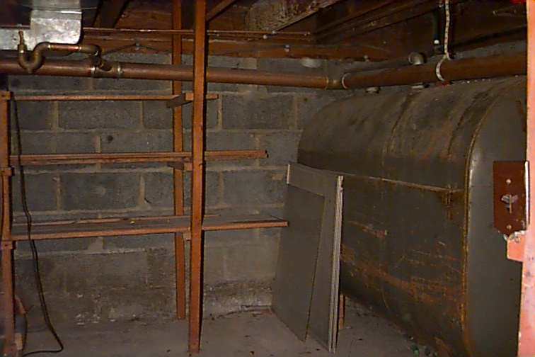 Another storage room off the basement. It has a floor raised a few feet off the basement floor.